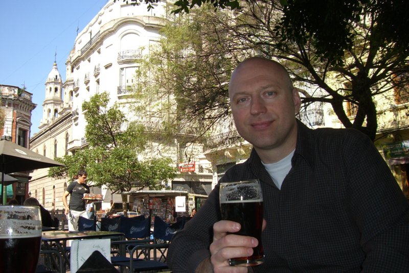 Having a cool beer at Dorrego square in San Telmo after our marathon walk from La Boca.